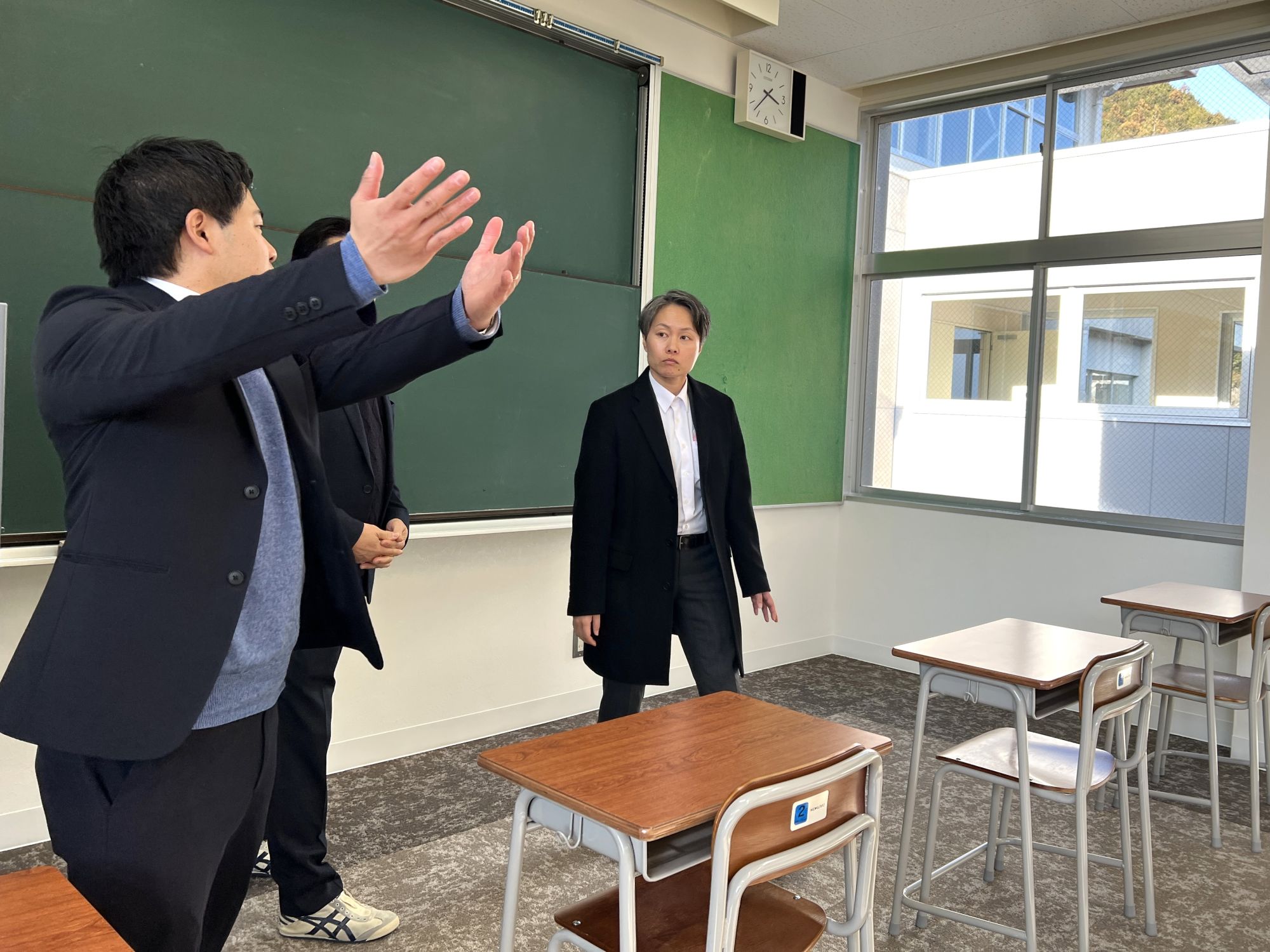 2026年2月13日(金)、改修工事が終了したばかりの「みえ大台おおぞら高等学校」校舎(旧大台町領内地域総合センター)を大台町長の上瀬裕美氏、副町長の西尾真由子氏が視察訪問しました。みえ大台おおぞら高等学校の藤井美由紀校長と北畠透副校長が出迎えました。